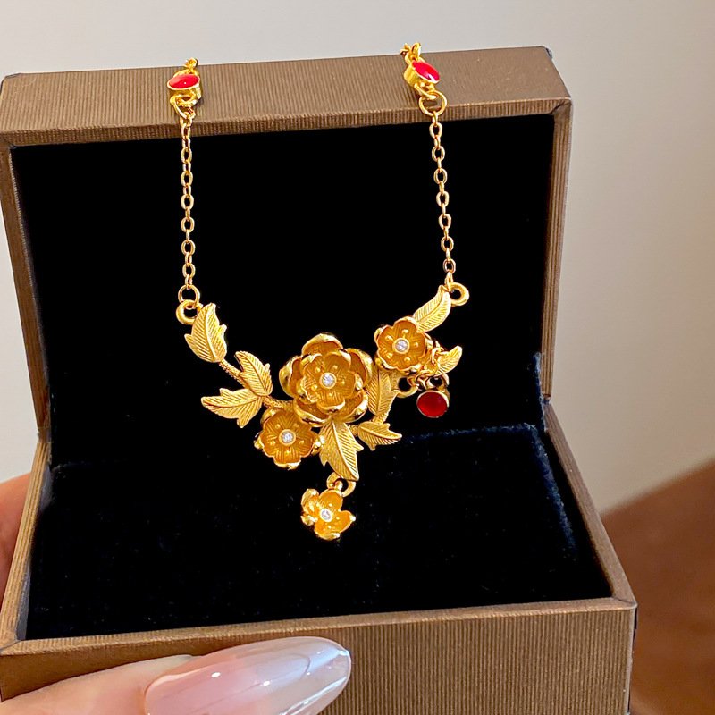 Golden Blossom Alchemy Pendant, Forges balance with celestial metal essence.