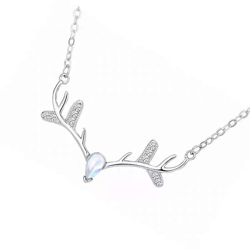 Lunar Stag Silver Necklace, A lucky charm necklace blending metal’s strength with timeless balance.